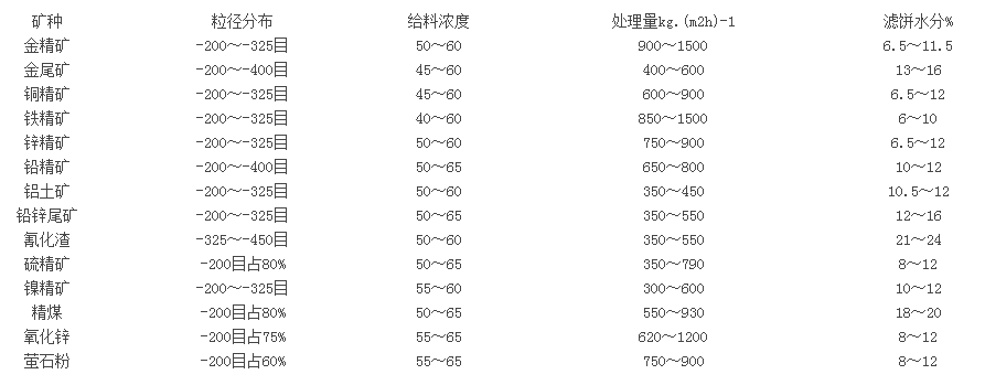 目前已廣泛應用于礦山有色金屬、稀有金屬、黑色金屬,非金屬等精礦及尾礦脫水,化工行業(yè)氧化物、電解渣、浸出渣、爐渣的脫水及環(huán)保污水污泥廢酸處理等。物料細度從-200到-450目以及各種超細物料。