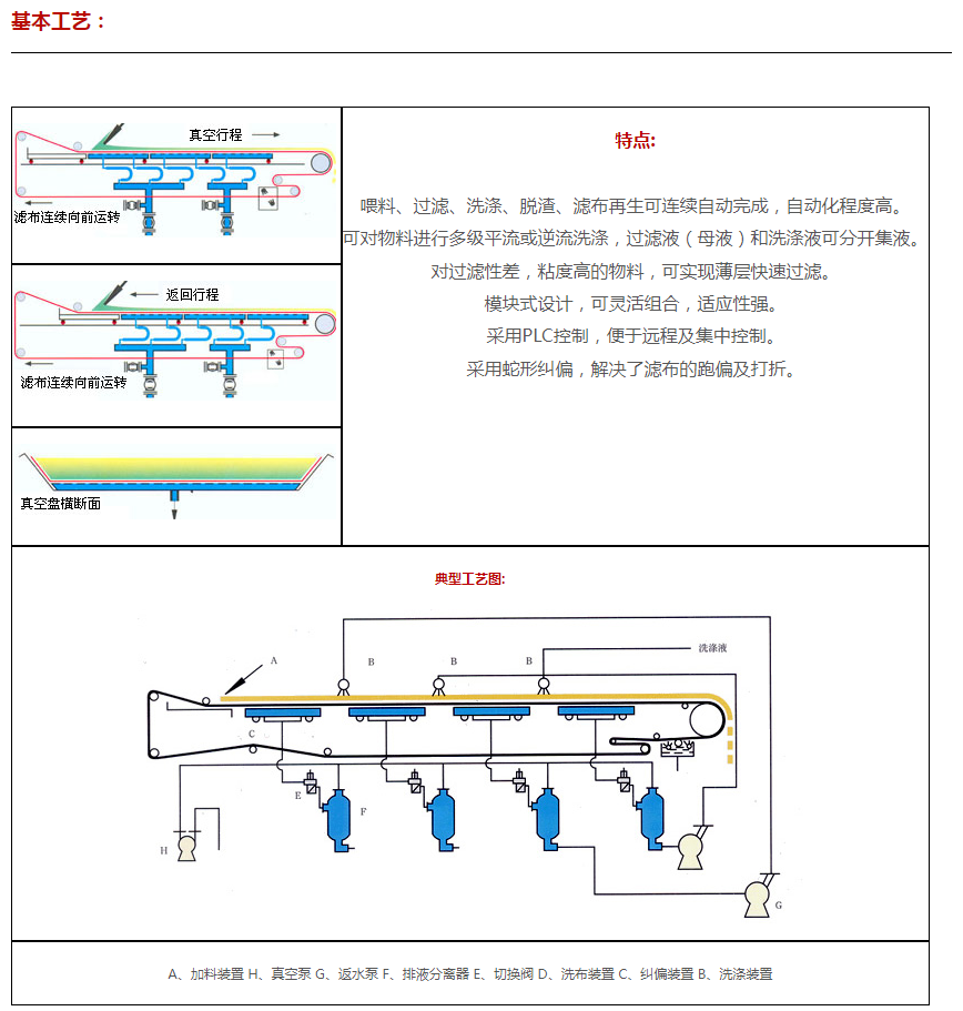 設(shè)備簡介:PBF移動盤式真空過濾機是一種自動化程度較高的過濾設(shè)備,該機以過濾布或濾網(wǎng)為介質(zhì),使料漿水平布置于過濾介質(zhì)之上,充分利用料漿重力和真空吸力實現(xiàn)固液分離。生產(chǎn)過程全自動運行,但屬于間歇性工作,約為DU系列工作效率的0.8倍,但造價便宜,因而被諸多工業(yè)部門優(yōu)先采用。可根據(jù)生產(chǎn)需要自由調(diào)整運行速度、進料量、洗滌水量。該類設(shè)備技術(shù)成熟,運行平穩(wěn),廣泛應(yīng)用于電力環(huán)保、礦山、化工、冶金、造紙、食品、制藥及煤炭等行業(yè)。